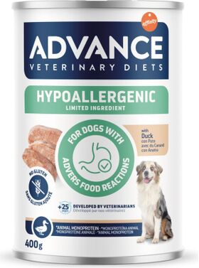 | ADVANCE VETERINARY DIET DOG Hypoallergenic DUCK 400gr - pilnvērtīga un sabalansēta diētiska mitrā barība, kas paredzēta visu izmēru suņiem ar alerģiskām reakcijām uz barību. Tā pagatavota no pīles gaļas kā vienīgā dzīvnieku olbaltumvielu avota un atlasītiem ogļhidrātiem bez glutēna, kas samazina blakusparādību risku. SASTĀVDAĻAS: Pīle 34%, pilngraudu kukurūza 4%, rīsi, burkāni, rīsu proteīns, minerālvielas, brūnie rīsi 1%, saulespuķu eļļa, fermentēti rīsu milti, žāvētu ananāsu serzu koncentrāts 0,1%. Olbaltumvielu avots: pīle, rīsu proteīns. Ogļhidrātu avots: pilngraudu kukurūza, burkāni, brūnie rīsi. *Neskatoties uz rūpību, kas pielikta tā pagatavošanā, tas var saturēt citu dzīvnieku DNS pēdas. Piedevas: Uzturvērtība: D3 vitamīns 240 SV, E vitamīns 18 mg, cinka sulfāta monohidrāts 82.2mg (Zn:30mg); vara(II) sulfāta pentahidrāts 5.9mg (Cu:1.5mg). 3b605 (Zn: 39,4 mg), olīvu ekstrakts 160 mg. Analītiskās sastāvdaļas: kopproteīns 6.7%, koptauki 4.5%, kopšķiedra 0.8%, koppelni 2,3%, mitrums 78%, linolskābe (Omega-6) 1,22%.  |