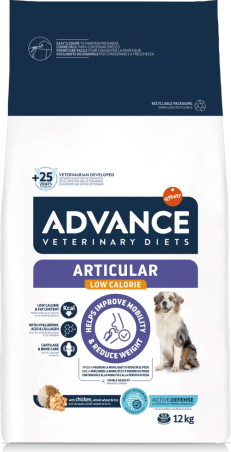 | ADVANCE VETERINARY DIETS DOG ARTICULAR Low calorie - pilnvērtīga un sabalansēta diētiska barība visu šķirņu un vecuma piaugušiem suņiem, kas izstrādāta locītavu atjaunošanai un uztura atbalstam pieaugušiem suņiem ar lieko svaru. ADVANCE VETERINARY DIETS Articular Low Calorie piedāvā redzamus rezultātus: tā palīdz samazināt svaru un saglabāt locītavu veselību un kustīgumu, pateicoties tās mazkaloriju formulai un hialuronskābes, hidrolizēta kolagēna, hondroitīna, glikozamīna un omega 3 saturam. SASTĀVSVistas gaļa (16%), pilngraudu kvieši (13%), dehidrēti tunča proteīni, rīsi (8%), kviešu milti, dehidrēti mājputnu proteīni, kukurūzas proteīns, zirņu šķiedrvielas, hidrolizēti dzīvnieku proteīni (mājputni, cūkgaļa, zivis), mājputnu tauki, biešu mīkstums, zivju eļļa (EPA avots), hidrolizēts kolagēns (2,5%), kviešu atsijas, pilngraudu kukurūza, lignoceluloze, raugs, cigoriņu inulīns (0,4%), cūkgaļas plazmas proteīni (dabīgs imūnglobulīnu avots) (0,4%), kālija hlorīds, monokalcija fosfāts, glikozamīns (550 mg/kg), hondroitīna sulfāts (430 mg/kg), hialuronskābe (25 mg/kg). ANALĪTISKIE KOMPONENTI: Kopproteīns 28%; koptauki 12,5%; kopšķiedra 6%; koppelni 6,5%; Omega 3 0,7%; omega-6 2,3%. Metabolizējamā enerģija: 3490 kcal/kg PIEDEVAS/kg. UA vitamīns 27000 SV, E vitamīns 700 mg, C vitamīns 500 mg, dzelzs(II) sulfāta monohidrāts 260 mg (Fe: 86 mg), kālija jodīds 1,9 mg (I: 1,4 mg), vara (II) sulfāta pentahidrāts 33 mg (Cu: 8,8 mg), mangāna sulfāta monohidrāts 123 mg (Mn: 40 mg), cinka sulfāta monohidrāts 406 mg (Zn: 148 mg), nātrija selenīts 0,24 mg (Se: 0,1 mg). Zootehniskās piedevas: zarnu floras stabilizatori: Bacillus velezensis DSM 15544 1x10⁹. Ar antioksidantiem. BAROŠANAS NORĀDĪJUMI: Skatīt Barošanas ceļvedi. Dienas barības daudzums norādīts tikai informatīvi un to jāpielāgo jūsu dzīvnieka fiziskai kondīcijai, aktivitātes līmenim, kā arī dzīves apstākļiem. Lai uzturētu suni labā fiziskā formā, ieteicamas ikdienas aktivitātes. Uzglabāt vēsā, sausā vietā. Vienmēr atstājiet savam sunim tīru un svaigu ūdeni. |