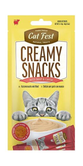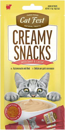| Cat Fest Krēmīga uzkoda ar liellopu gaļu un ikriem, 4 × 10 g