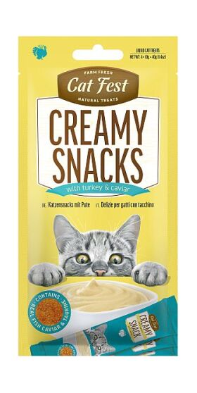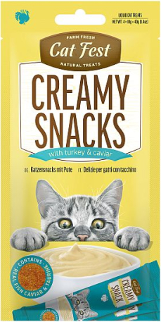 | Cat Fest Krēmīga uzkoda ar tītara gaļu un ikriem, 4 × 10 g Maigs krēms no tītara gaļas ar īstu delikatesi — lidojošo zivju ikriem — iepriecinās jūsu kaķi ar spilgtu un bagātīgu garšu. Tā sastāvā ir tikai augstas kvalitātes dabīgas sastāvdaļas, kas nodrošina ne tikai izcilu garšu, bet arī nepieciešamās barības vielas jūsu mīlulim. Pateicoties sastāvam, šī krēmveida uzkoda uzlabo kaķa apmatojuma, ādas un nagu stāvokli un kalpo kā papildu mikroelementu un mitruma avots. Ērts iepakojums ļauj baudīt neaizmirstamus mirkļus, barojot mīluli tieši no paciņas. Sastāvs: vistas gaļa 40%, tītara gaļa 6%, lidojošo zivju ikri 4%, augu izcelsmes atvasinājumi, vistas tauki, rauga ekstrakts, minerālvielas. Uztura piedevas (mg/kg): taurīns 500, E vitamīns 500. 100 g satur: olbaltumvielas — 12 g; tauki — 2 g; pelni — 2 g; šķiedrvielas — 1 g; mitrums — 85 g. Enerģētiskā vērtība 100 g: 55 kcal. Barošanas ieteikumi: Pasniedziet kā porciju kārumu vai pievienojiet kā garšīgu piedevu galvenajai barībai, lai uzlabotu garšu. Vienmēr nodrošiniet svaigu ūdeni. Ieteicamā dienas norma — līdz 4 paciņām. |