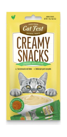 | Cat Fest Krēmīga uzkoda ar vistu un ikriem, 4 × 10 g - papildbarība kaķiem.