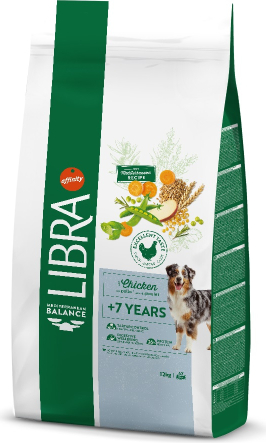 | Libra Dog Adult Chicken & Rice +7 years - pilnvērtīga un sabalansēta barība suņiem vecumā no 7 gadiem, ar vistas gaļu. Sastāvs: Graudaugi (pilngraudi 8%), gaļa un dzīvnieku izcelsmes blakusprodukti (dehidrēts vistas proteīns 4%), augu izcelsmes blakusprodukti, augu olbaltumvielu ekstrakti, dārzeņi, eļļas un tauki, minerālvielas. Uzturvielas piedevas: A vitamīns 21 000 SV, D3 vitamīns 1200 SV, E vitamīns 75 mg, dzelzs(II) sulfāta monohidrāts 237 mg (Fe: 78 mg), kālija jodīds 1,7 mg (I: 1,31 mg), vara(II) sulfāta pentahidrāts 30 mg (Cu: 8 mg), mangāna sulfāta monohidrāts 112 mg (Mn: 36,5 mg), cinka sulfāta monohidrāts 219 mg (Zn: 80 mg), nātrija selenīts 0,22 mg (Se: 0,1 mg), ar antioksidantiem. Analītiskās sastāvdaļas: 26% neapstrādāts proteīns, 10% neapstrādāti tauki, 3% neapstrādātas šķiedrvielas, 7,5% neapstrādāti pelni, 0,3% Omega 3, 1,5% Omega 6. Barošanas norādījumi: Barības daudzuma norādes ir sniegtas tikai informatīviem nolūkiem un to ir jāpielāgo dzīvnieka fiziskajai formai, aktivitātes līmenim, kā arī dzīvošanas apstākļiem. Lai uzturētu suni labā fiziskā formā, ieteicamas ikdienas aktivitātes. Glabāt vēsā, sausā vietā. Tīram un svaigam ūdenim tīrā bļodā ir jābūt pieejamam visu laiku. |