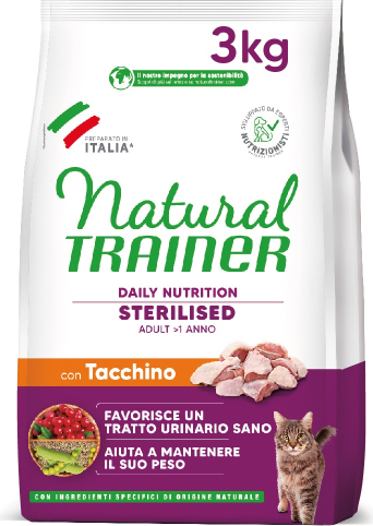 NATURAL TRAINER CAT STERILISED TURKEY 3.0 KG - pilnvērtīga sausā barība ar tītara gaļu pieaugušiem sterilizētiem kakiem