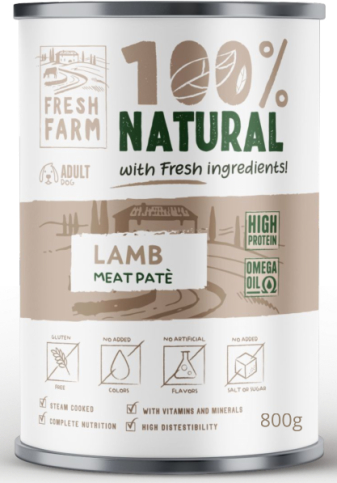 | PF Fresh Farm Smooth pate with lamb 800 gr - pilnvērtīga barība, pastētes veida konservi suņiem, ar jēra gaļu. SASTĀVS: jēra gaļa 31%, vistas gaļa 22%, saldie kartupeļi 4%, zirņu milti, 5% rīsi, laša eļļa 0,5%. PIEDEVAS/kg: vitamīns D3 (E671) 200 SV, Vit. E (3a370) 150 mg, cinks (3b610) 15 mg, mangāns (3b510) 3 mg, kalcija karbonāts 2 mg. ANALĪTISKĀS SASTĀVDAĻAS: kopproteīns 8%, koptauki 6%, koppelni 3%, mitrums 78%, kopšķiedra 0,5%, kalcijs 0,1%, fosfors 0,3%, nātrijs 0,2% |