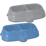 STEFANPLAST Миска двойная противоскользящая BREAK 13 0,2+0,2 л (голубая или серая) 21x13x5h см